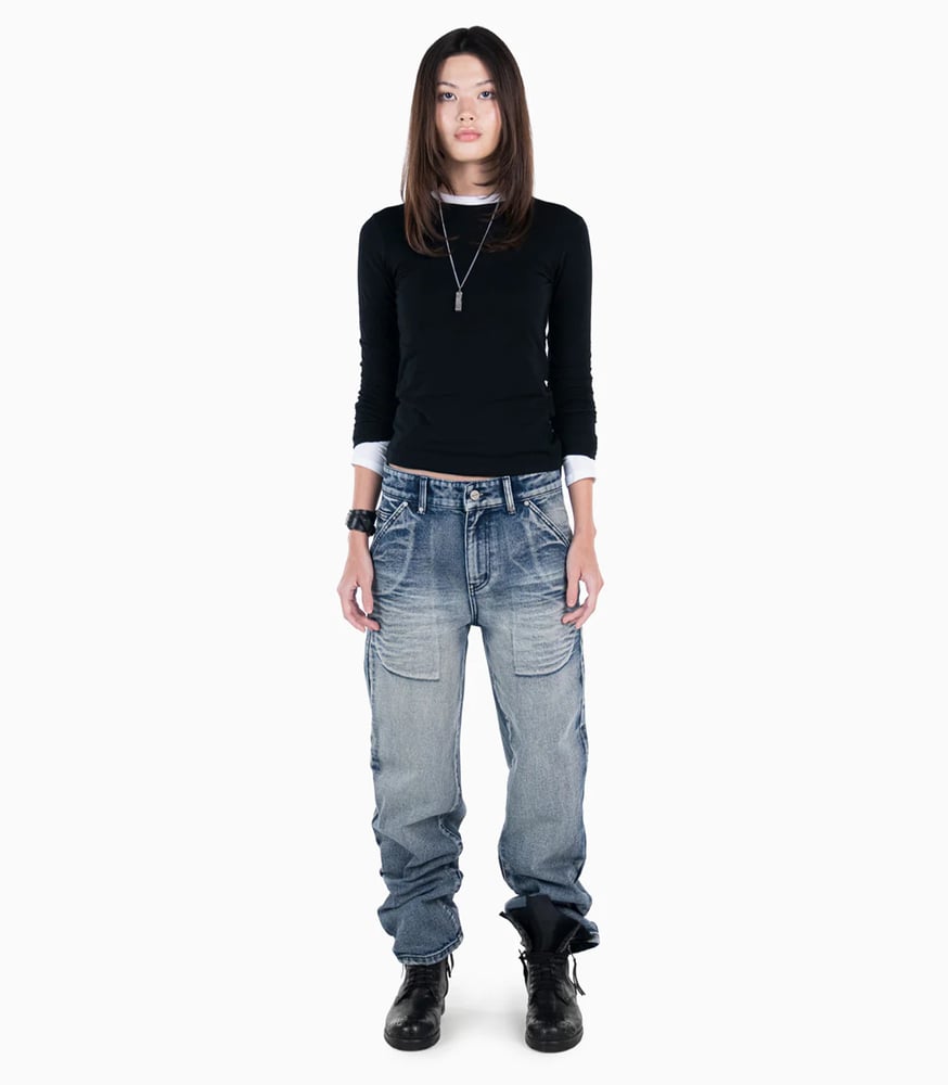⁃ Low waist, straight fit