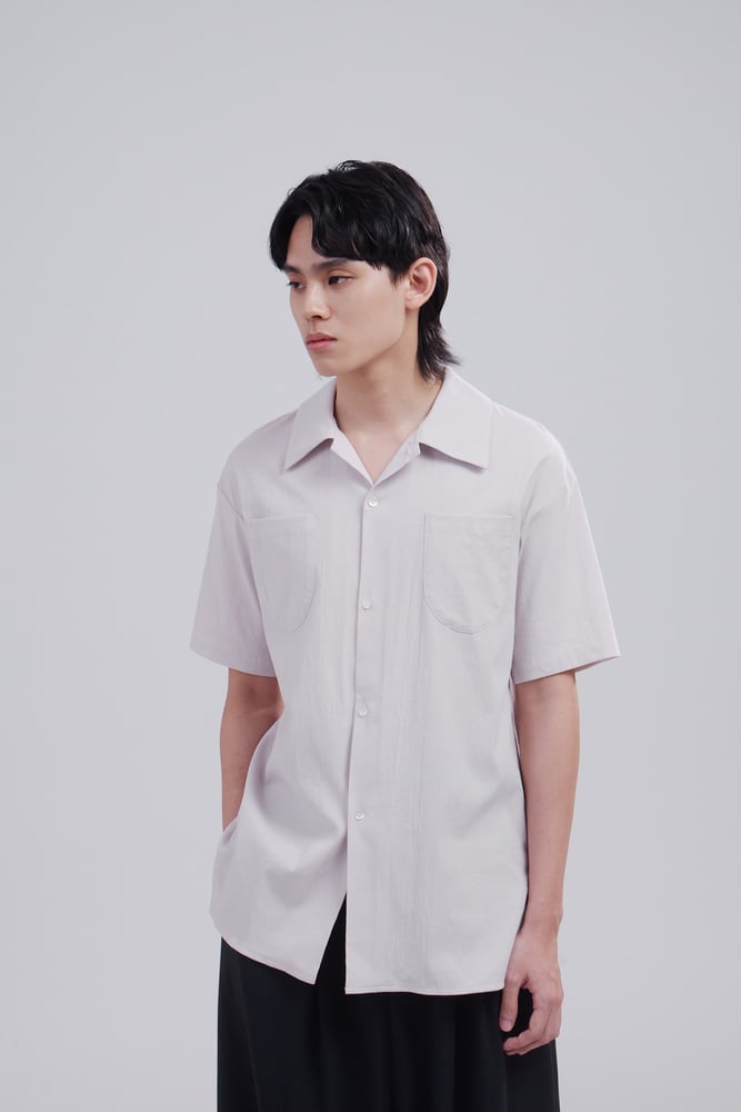 輕光澤質感布料,國民領襯衫,TRAN開發改良版型,微傘狀、小落肩,修飾輪廓,搭配方式多元。